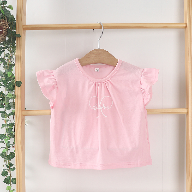여아 핑크 프릴 반팔 티셔츠, 여름 아동 티셔츠 2~7세 슬리어 프린팅 상의